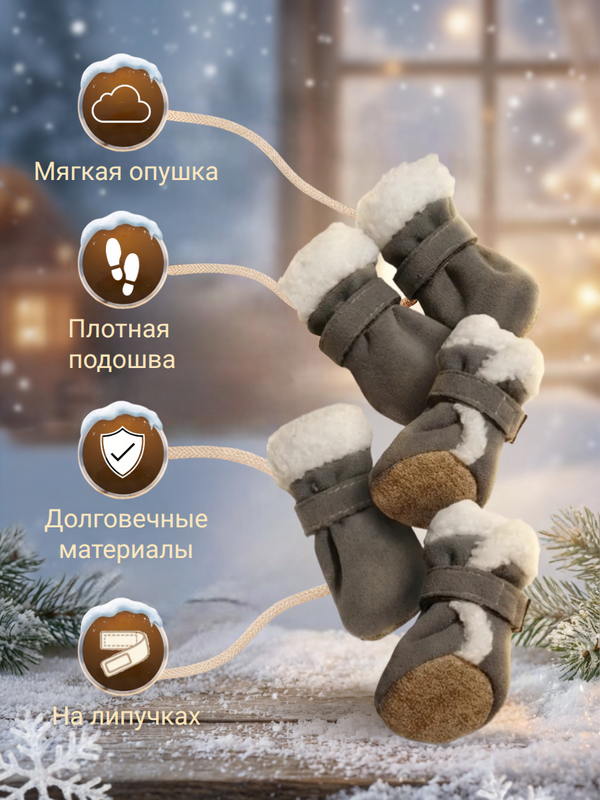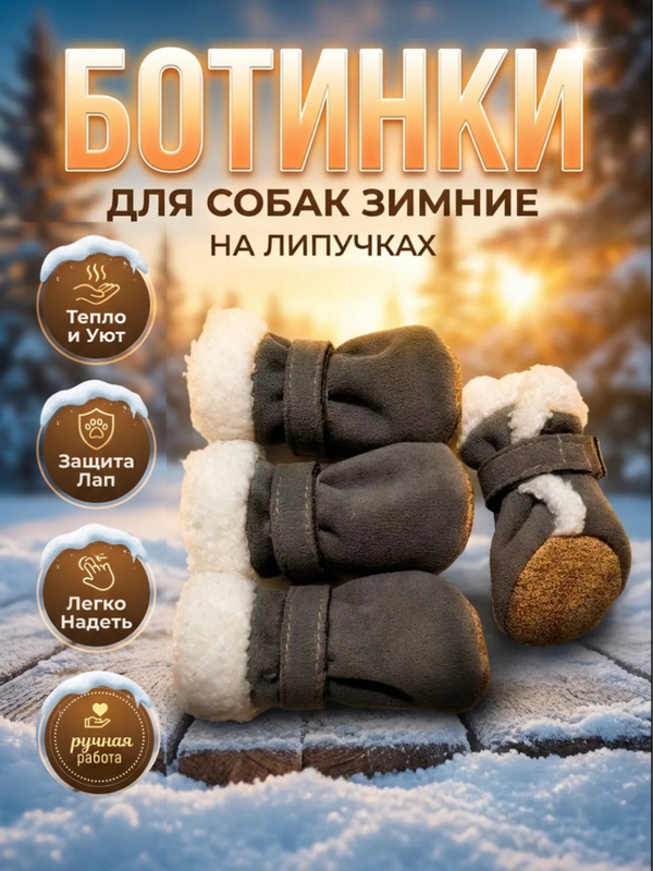 Зимние ботинки для собак мелких пород. Защита лап от холода, снега и реагентов. Мягкие и теплые внутри, с подошвой из экозамши. Ручная работа. Идеальны для собак, которые впервые пробуют обувь — легкие, как пинетки.